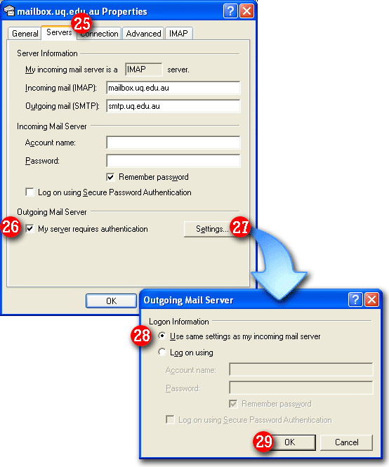 | 16)By default Outlook 2000 will enter part of your email address as the username. Delete this information and enter your 'email address' (for example: me@mydomain.com). | |||||
