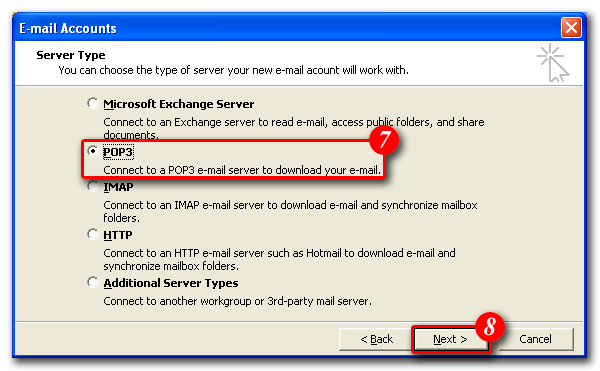 | 9)Enter your name and email address (Note: the name you enter here will be displayed on all outgoing email messages) |