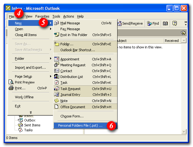 6)Select 'Personal Folders File (.pst) ... '